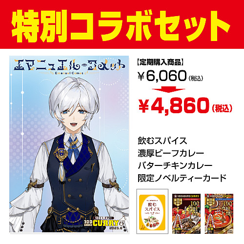 ビーフカレーとバターチキンカレー&飲むスパイス+限定ノベルティのついたコラボセットです。
